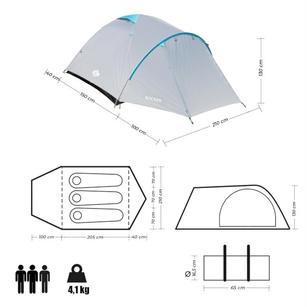 NILS Camp NC6013 Rocker je 3 osobový stan, který oceníte během teplých letních nocí na zahradě a nebo při pobytu v kempu. Stan Rocker je dvouplášťový a skládá se z prostorné předsíňky a jedné ložnice.