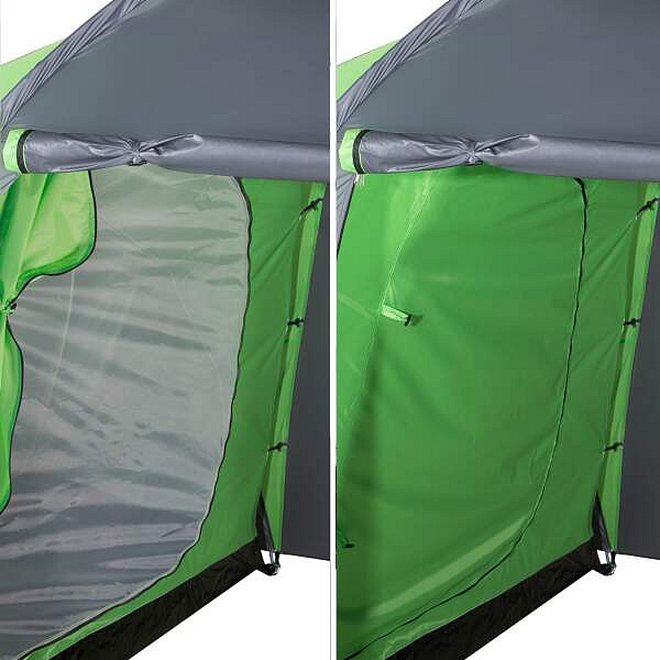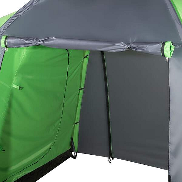 Highland nabízí dvě samostatné ložnice, každou pro tři osoby, a velkou předsíň o rozměrech 210 × 210 × 200 cm. To je dostatek prostoru k pohodlnému pobytu uvnitř stanu – ať už odpočíváte, nebo se schováváte před deštěm.