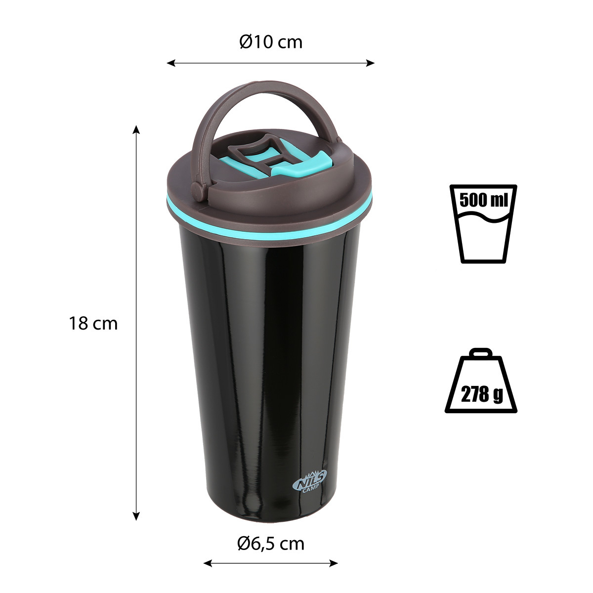 Termohrnek NILS Camp NCB18 se vyznačuje jednoduchou konstrukcí a originálním designem! Termohrnek je vyroben z nerezové oceli s dvojitou stěnou, která zaručuje uchování teplých nápojů po dobu 12 hodin a studených po dobu 24 hodin, nezáleží tedy, zda si do hrnku připravíte ranní kávu, kterou vypijete cestou do práce a nebo zda si do něj přelijete oblíbenou limonádu a vezmete si jej s sebou na několikahodinovou procházku do přírody, termohrnek udrží Váš nápoj ve správné teplotě. Model NCB18 má velmi pohodlný systém otevírání. Stačí zatáhnout za páčku a je hotovo. Silikonový výlisek ve víčku zamezuje rozlití nápoje, pokud je hrnek zavřený. Další velkou výhodou je, že spodní část hrnku je opatřena protiskluzovou gumou, která zvyšuje bezpečnost před rozlitím horké kávy nebo čaje, když je hrnek otevřený!