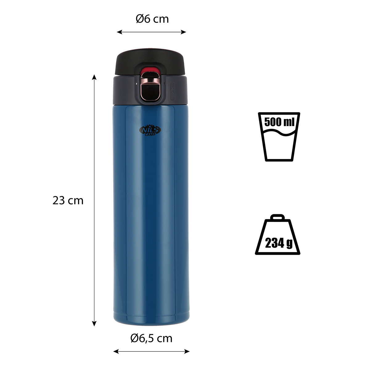 Těsná konstrukce eliminuje riziko úniku obsahu, takže nezáleží v jaké poloze je termoska přepravována. Termoska má průměr 8,2 cm, dobře padne do ruky, snadno se vejde do standardních držáků v autě i do bočních kapes batohů. Výška 32,8 cm zajišťuje, že je zároveň prostorná a praktická.