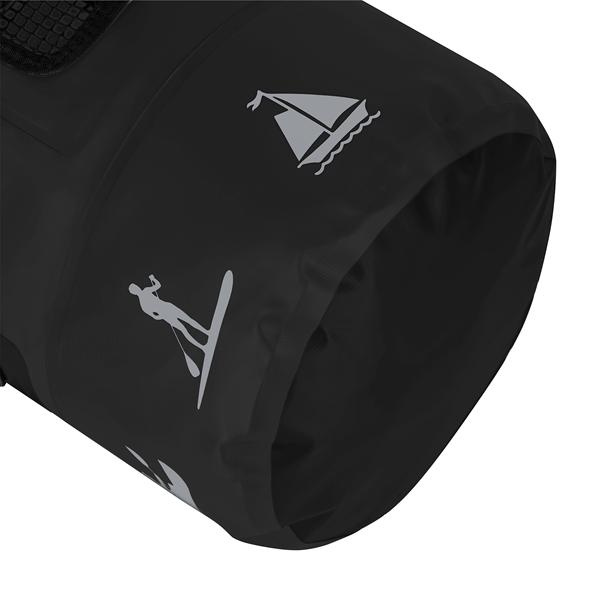 Hlavní komora se uzavírá srolováním a sepnutím přezkou, což zvyšuje těsnost a chrání obsah před zalitím vodou. Nastavitelné ramenní popruhy jsou odnímatelné, takže vak můžete nosit na zádech jako batoh, nebo v ruce, jako klasickou tašku.