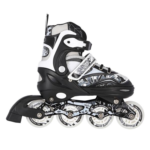 Model je vybaven praktickým systémem čtyřstupňové regulace velikosti – jednoduchým stisknutím tlačítka pod patou lze posunout špičku boty a nastavit jednu ze čtyř velikostí. Tento systém umožňuje, aby brusle rostly spolu s dítětem a současně snižuje celkové náklady na vybavení.