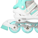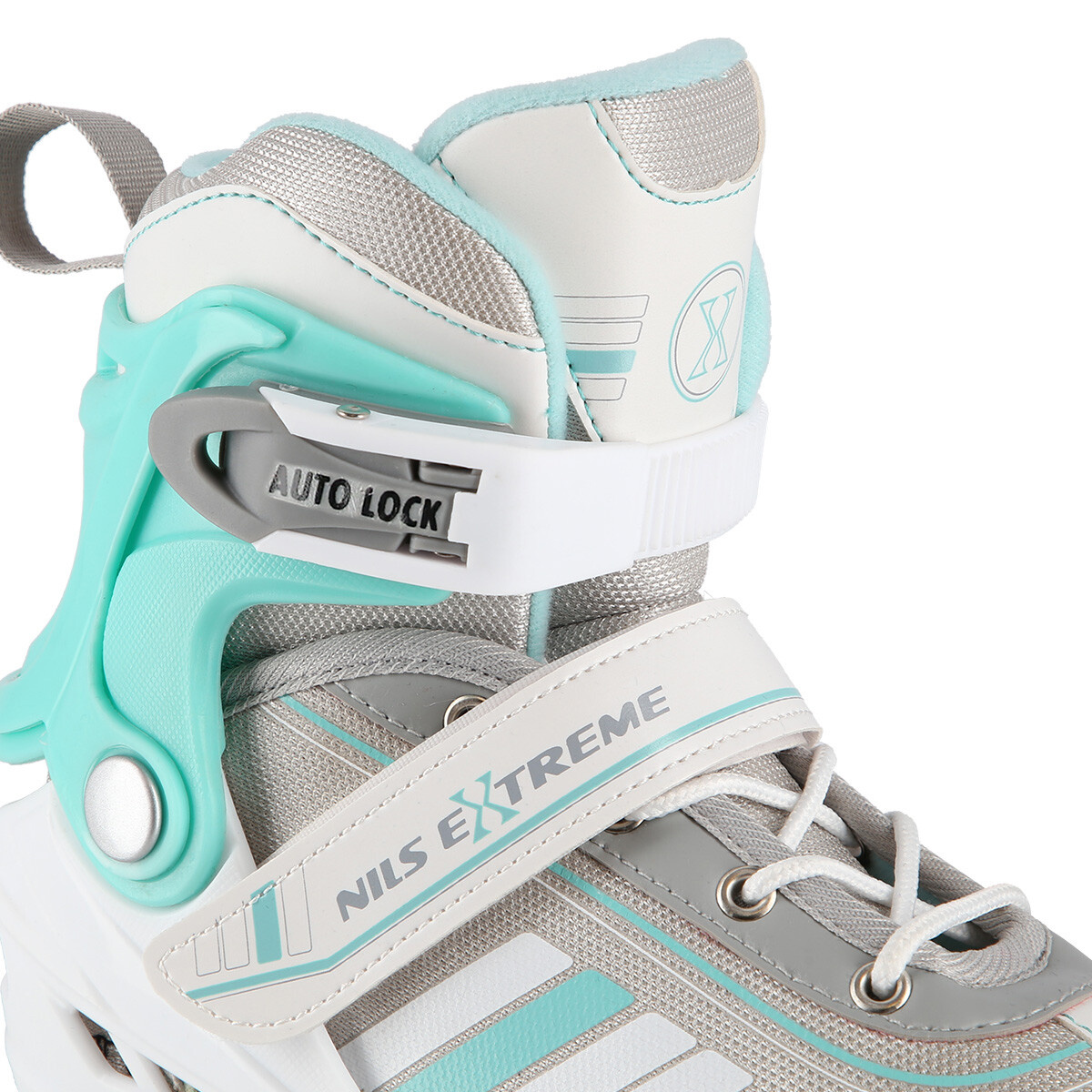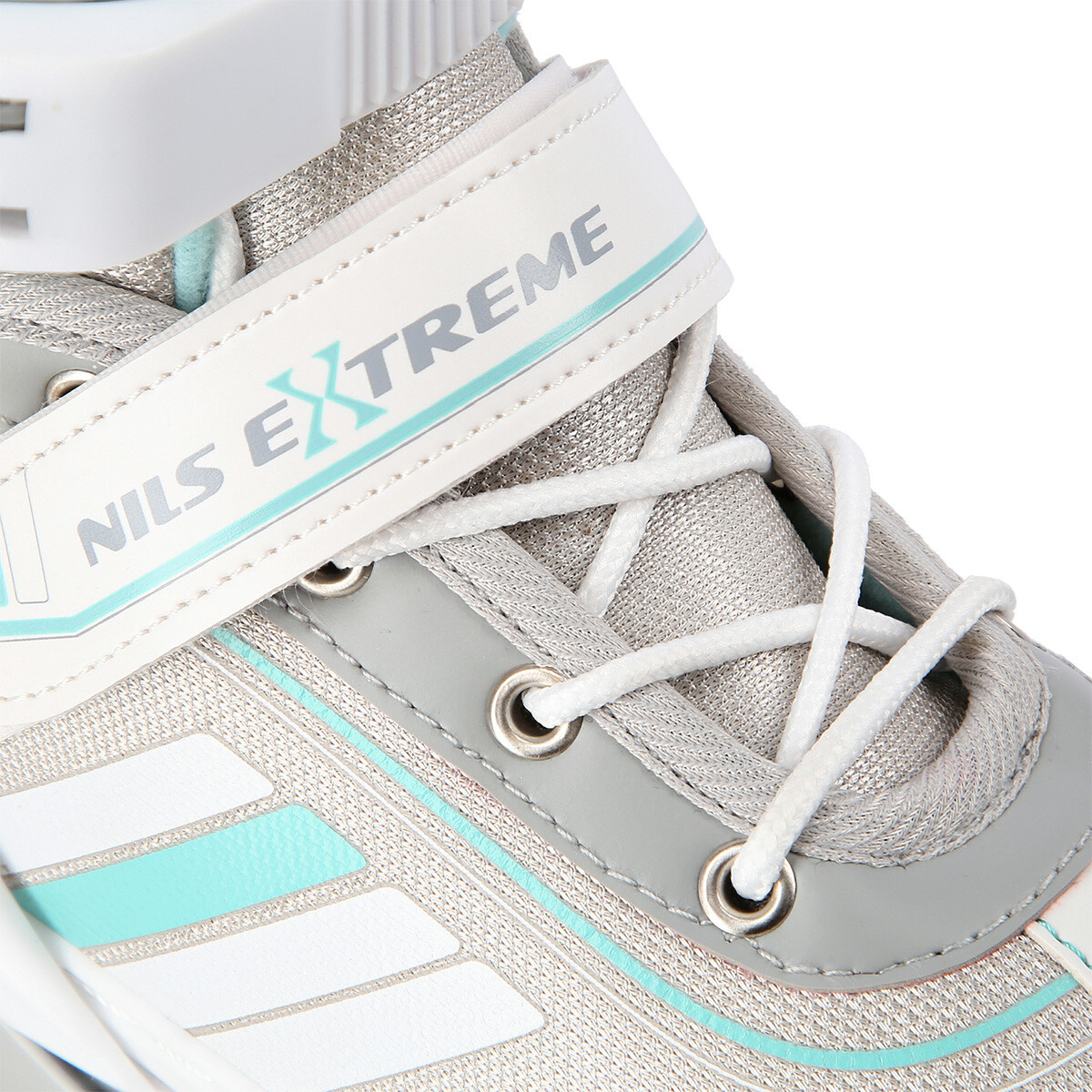 Kolečkové brusle NILS Extreme NH18191 pro rekreační jízdu s PU kolečky a ložisky ABEC 7 a vyměnitelnými noži na led. Zapínání na dvousekční přezku, řemínek se suchým zipem a šněrování. Bota je nastavitelná do 4 velikostí.Více