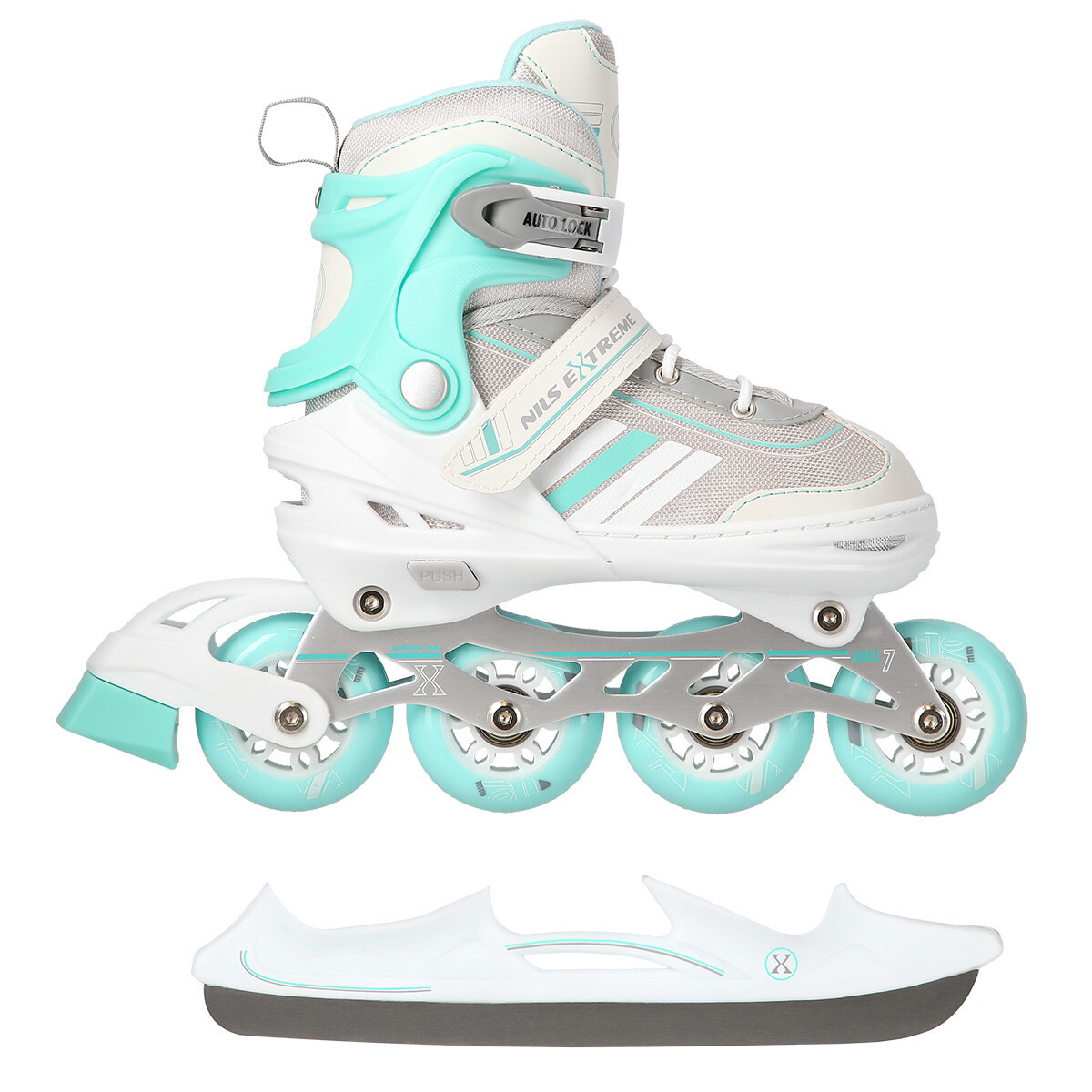 NILS Extreme NH18191 jsou kolečkové brusle s vyměnitelným nožem na led, které jsou určeny pro začínající a středně pokročilé uživatele.