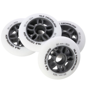 Sada 4 kusů náhradních koleček NILS Extreme PU 72 x 24 mm s tvrdostí 82A v matné úpravě s minimalistickým designem.