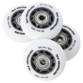 Náhradní kolečka pro fitness kolečkové brusle. Určeny pro rekreační jízdu, charakterizovány dvěma základními parametry: průměr a stupeň tvrdosti. Průměr kolečka rovný 76 mm slušnou rychlost a ovladatelnost. Tvrdost 82A poskytuje vynikající přizpůsobení ka