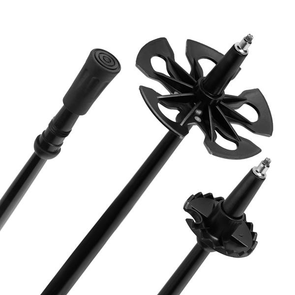 Díky hliníkovým rychloupínacím zámkům lze hole rychle a pohodlně nastavit podle individuálních preferencí. Toto řešení zajišťuje stabilitu a pevnost, čímž eliminuje riziko samovolného zkracování během chůze.