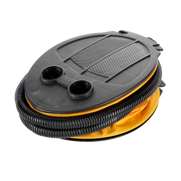 Díky kompaktním rozměrům a 105 cm dlouhé hadici umožňuje pohodlné a efektivní pumpování, aniž byste se museli ohýbat nebo vynakládat velké úsilí. Pumpa je lehká a lze ji zajistit v ploché poloze, což výrazně usnadňuje její přepravu a skladování. Na horní straně naleznete 2 výstupy - jeden pro nafukování a druhý pro vyfukování.