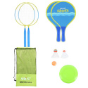 Tato vynikající sada je ideální volbou pro všechny, kteří rádi tráví svůj čas aktivně v přírodě. Skvěle se hodí na pláž, do parku nebo na zahradu u vás doma. Ocelové i dřevěné pálky mají mnohem větší odrazovou plochu než badmintonové rakety. To umožňuje plynulejší a snadnější hraní, a tak si s touto výzvou poradí i ti nejmenší milovníci "pinkání". Závěr je jeden, zábava pro celou rodinu. Nezapomeňme, že sada obsahuje také frisbee, které bude dokonalým zpestřením prázdninových her. Celá sada je zabalena v praktické tašce, kterou si můžete snadno přehodit přes rameno.