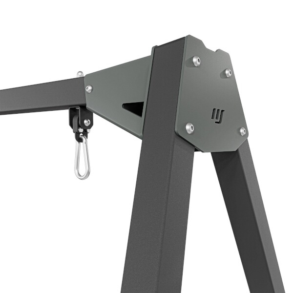 Pevné spoje a široká základna zajišťují stabilitu i při intenzivním používání. Stabilita rámu je navíc zvýšena výztuhou mezi nohami a příčníkem v podobě vhodně zahnutého upevňovacího prvku. Rám je vysoký přes 2 metry, díky čemuž je vhodný pro děti i dospělé. Tupý úhel tvořený příčkou s nohami výrazně zvyšuje stabilitu a bezpečnost celé konstrukce.