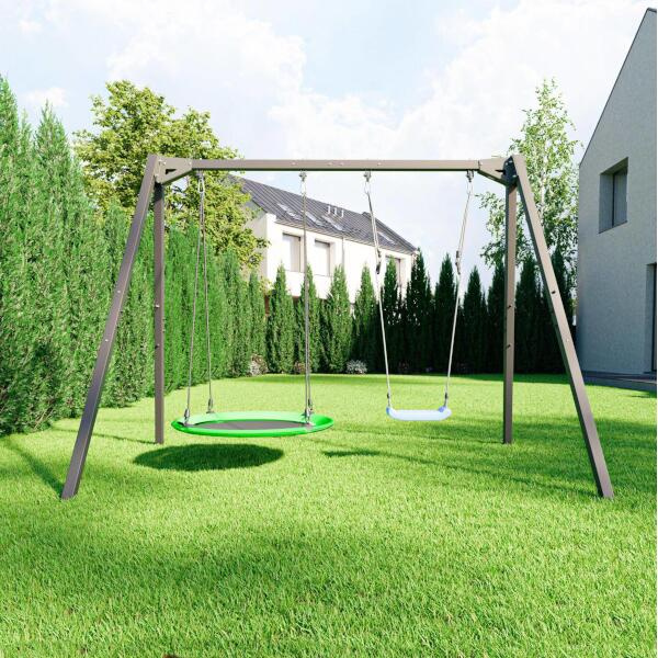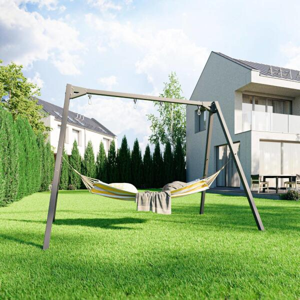 Součástí rámů houpaček jsou i 2 nástavce, které umožňují použít rám k zavěšení houpací sítě. Díky snadné montáži a demontáži závěsů můžete houpačky kdykoli vyjmout a zavěsit houpací síť, čímž se dětské hřiště promění v relaxační zónu - ideální například ve chvíli, kdy se děti již chystají ke spánku a vy jim chcete večer poskytnout chvíle odpočinku. Na tám lze také zavěsit další vybavení jako je boxovací pytel, gymnastické kruhy, nebo lano na šplh.
