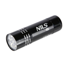 Ruční LED svítilna NILS Camp NC0002. Výkon 180 lm, napájení pomocí 1 x 18650 akumulátor a nabíjení přes USB. Hmotnost 30 g.