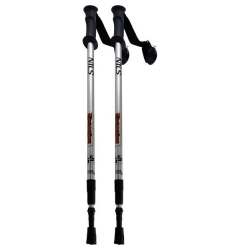 Teleskopické trekingové hole TK8601. Trojdílné, hliníkové zámky, plastová ergonomická rukojeť, nastavitelný řemínek. Délka 65 - 135 cm, hmotnost 2 x 310 g.