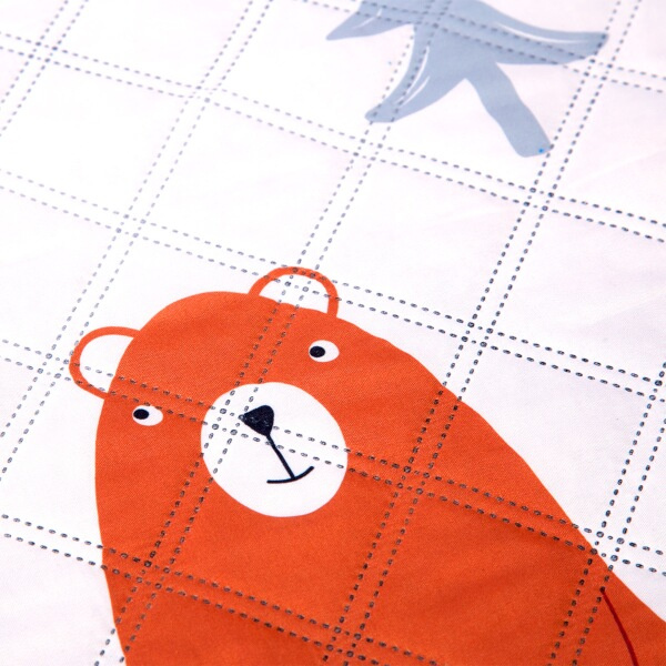NC8028 je vyrobena ze 2 vrstev polyesteru. Horní strana je běžně tkaná, vyvedena hravém designu. Spodní vrstva je vyrobena z polyesteru v úpravě Oxford - je speciálně tkaný a opatřen PVC zátěrem. Oxford je voděodolný a spodní strana tak chrání před vlhkem a chladem například od mokré trávy.
