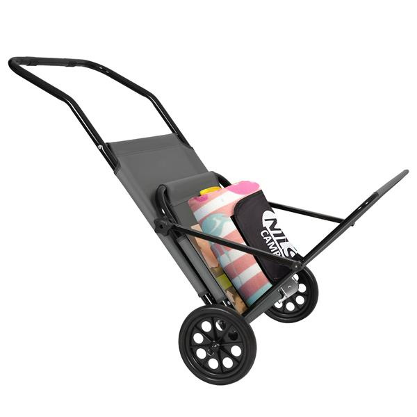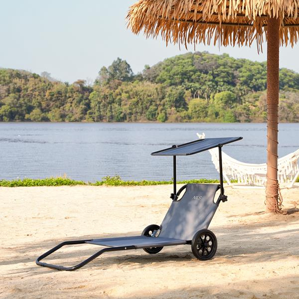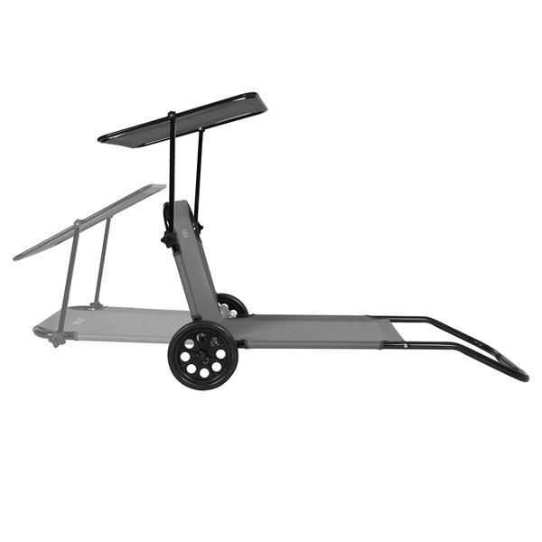 Na zadní části konstrukce jsou umístěna dvě transportní kolečka, která výrazně usnadňují přesun lehátka. Stačí lehce zvednout přední část a vést ho jako kufr – bez nutnosti zvedání nebo demontáže. To je obzvlášť užitečné na pláži, v kempu nebo když je třeba rychle přesunout lehátko na slunnější či zastíněné místo.