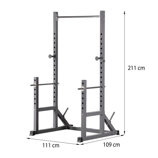 Power Rack PWS20 je vybaven hrazdou pro trénink přítahů. Kromě toho je stojan vybaven výškově nastavitelnými držáky činky, které lze přizpůsobit v 16 různých polohách. To umožňuje přesné nastavení výšky, což je nezbytné pro cviky s činkou, jako jsou dřepy a benchpress.