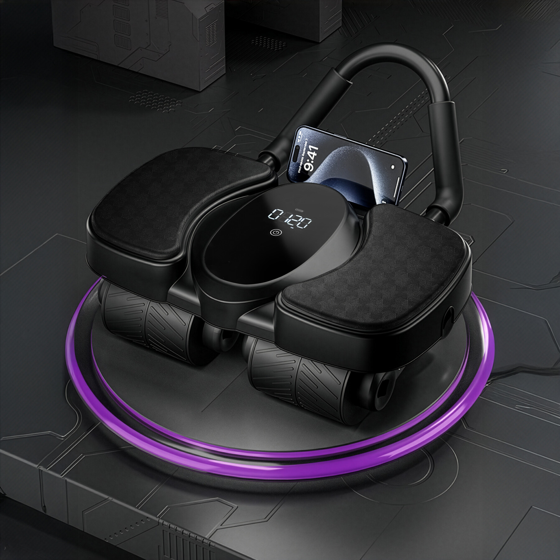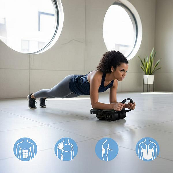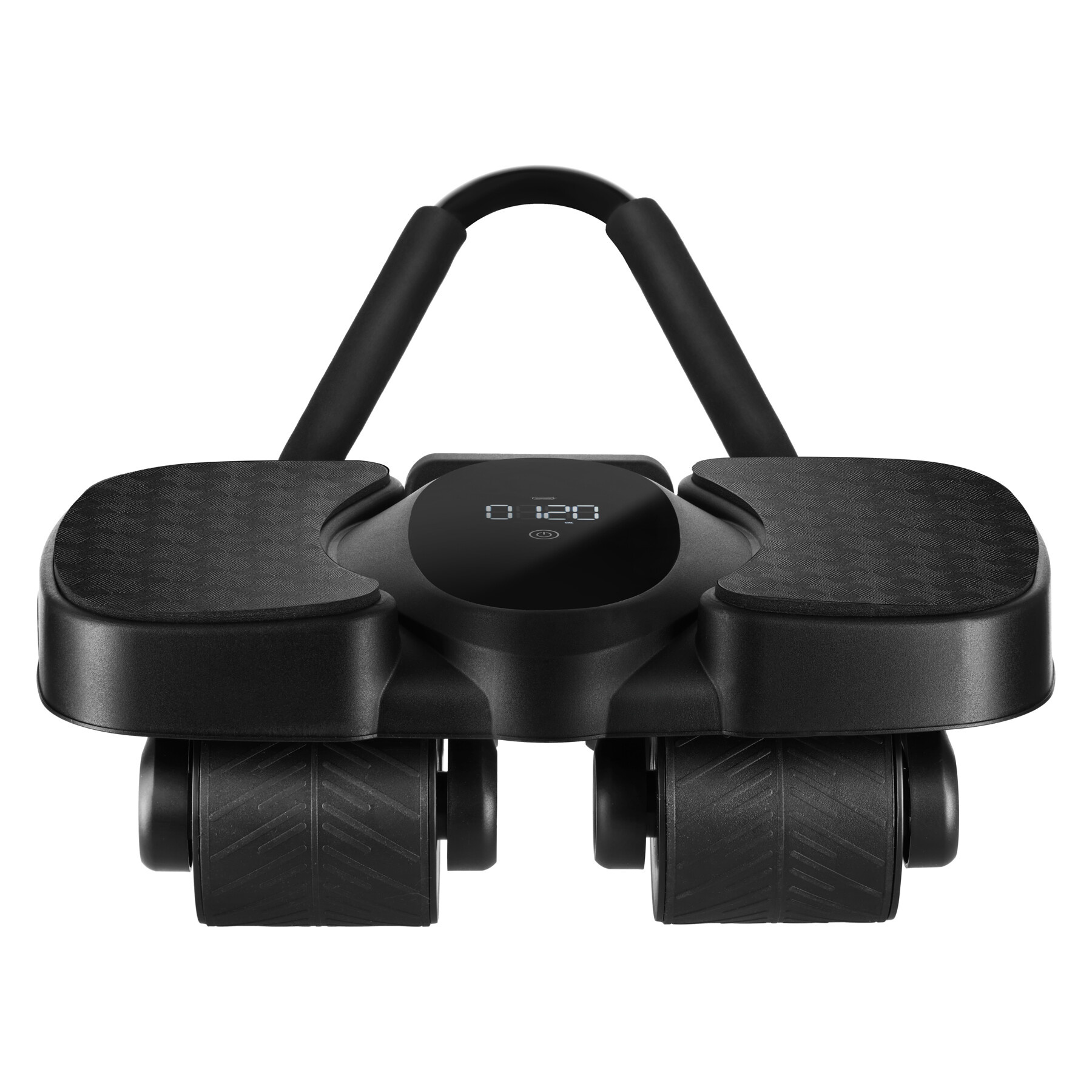 Čtyři gumová, protiskluzová kola zajišťují plynulý pohyb i na hladké podlaze. Konstrukce rovnoměrně rozkládá tlak, díky čemuž efektivně posiluješ core bez zbytečné zátěže ramen.