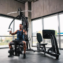 - Multifunkčnost – horní a dolní kladka, leg press, ramena pro rozpažování a tlaky, předkopávání.
