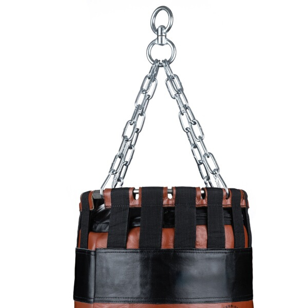 Naplněný profesionální boxovací pytel DBX Sovereign z přírodní kůže. Výška pytle 140 cm, průměr 45 cm, délka řetězů 45 cm. Hmotnost 50 kg.Více