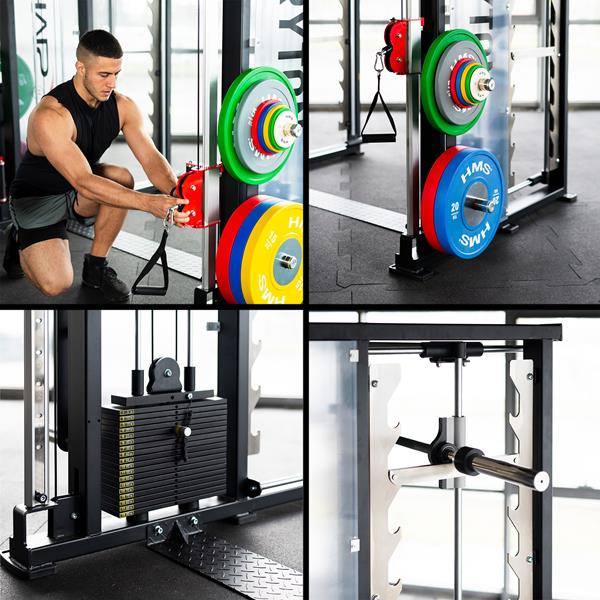 Popis Profesionální posilovací stroj HMS TRYTON - 3D multipress a protisměrné kladky se závažím