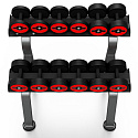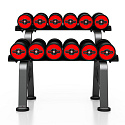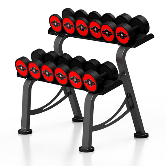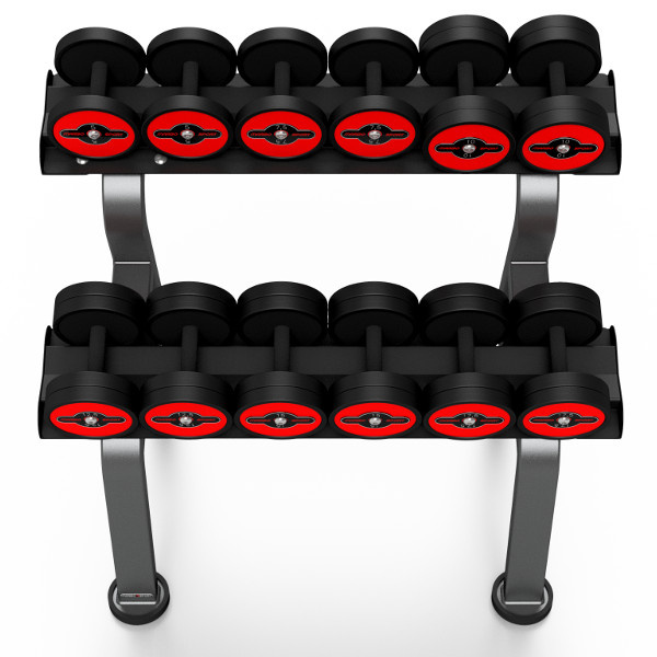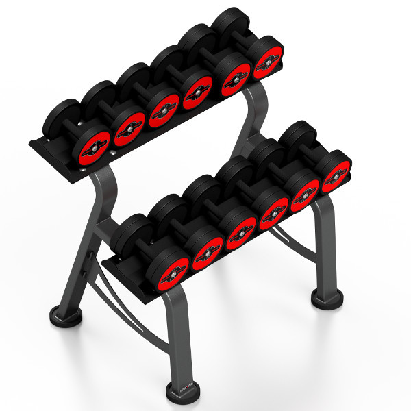 Profesionální sestava ocelových, pogumovaných činek 5-17,5 kg se stojanem MABRO S MP-HSGk5-S-k1 patří k základnímu vybavení každé posilovny. Sada obsahuje ocelový stojan MP-S207 který disponuje dvěmi odkládacími plochami o délce 110 cm a sadu 6ti párů ocelových, pogumovaných činek o hmotnostech od 5 do 17,5 kg vyvedené v červené barvě vysokého lesku s nálepkou end-plate s údajem o hmotnosti.