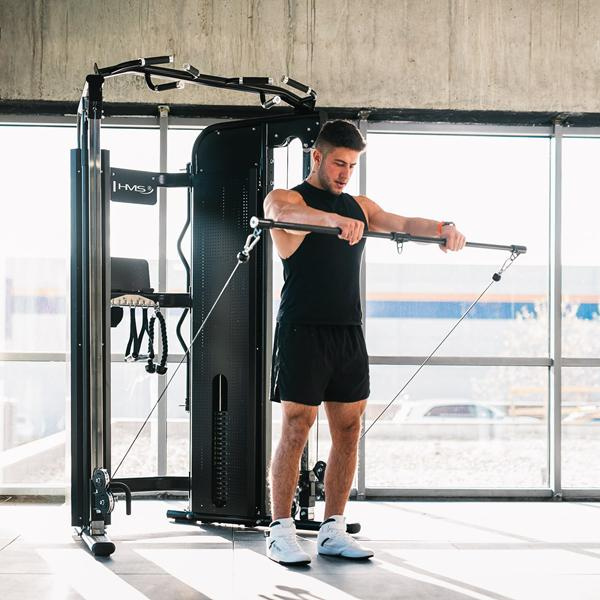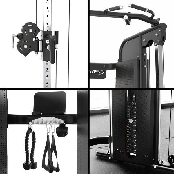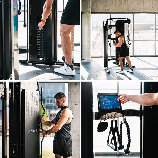 Zařízení umožňuje provedení desítek cviků – od klasických silových pohybů až po funkční a stabilizační trénink. Plynulá regulace výšky kladek (otočných o 180°) a přehledné číslování na ocelových vedeních umožňují rychlé nastavení podle výšky uživatele a typu cviku. Díky tomu se stroj skvěle hodí pro trénink celého těla: zad, hrudníku, ramen, paží, nohou i hlubokých svalů.