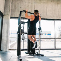 Integrovaná multi-grip hrazda nabízí mnoho variant úchopu: úzký, široký, neutrální, podhmat/nadhmat, paralelní úchop, smíšený úchop a přítahy na jedné ruce. Díky tomu ARES Pro kompletně nahrazuje stacionární hrazdu, čímž šetří místo v klubu nebo domácí posilovně.