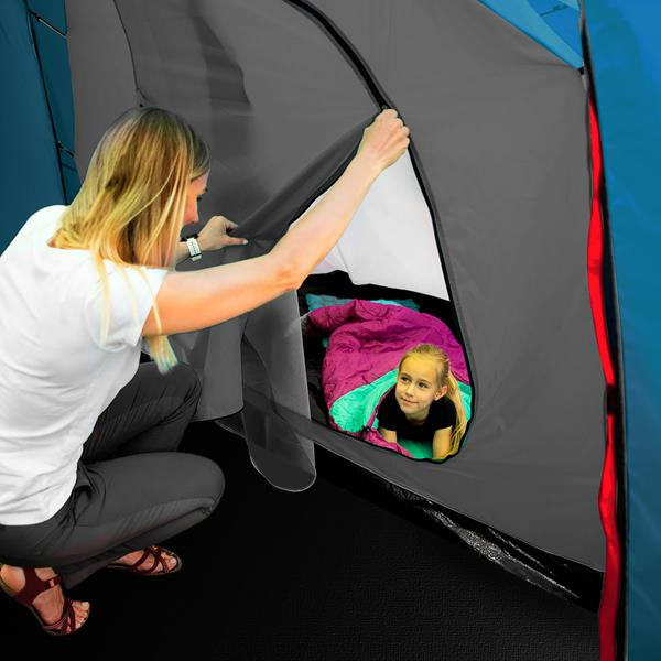 Highland nabízí dvě samostatné ložnice, každou pro tři osoby, a velkou předsíň o rozměrech 210 × 210 × 200 cm. To je dostatek prostoru k pohodlnému pobytu uvnitř stanu – ať už odpočíváte, nebo se schováváte před deštěm.