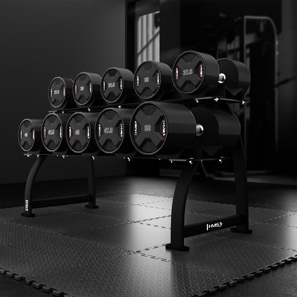 Jednoruční činky HMS HPC jsou vyrobeny z ocelového jádra potaženého litým polyuretanem (CPU). HPC jsou vybavením vytvořeným s ohledem na nejnáročnější uživatele. Výjimečná odolnost, estetické provedení a pokročilé vlastnosti z nich činí ideální volbu pro ty, kteří očekávají spolehlivost během intenzivních tréninků.