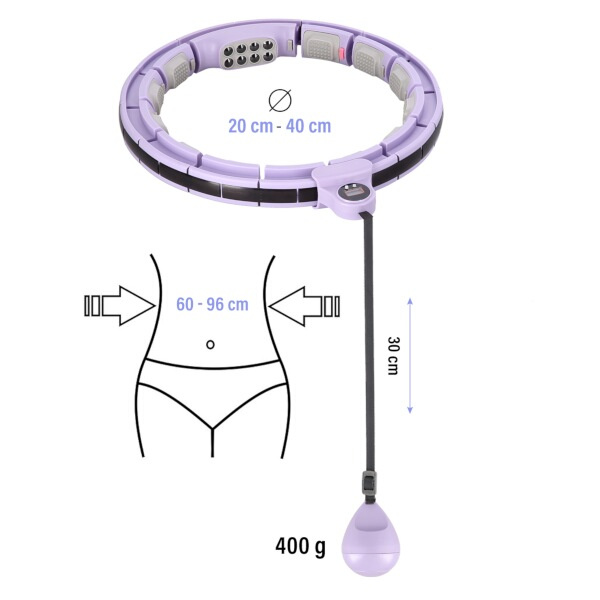 Popis Sada masážní hula hoop HMS HHM13 se závažím, magnety a počítadlem a zeštíhlujícího pásu BR163 fialová