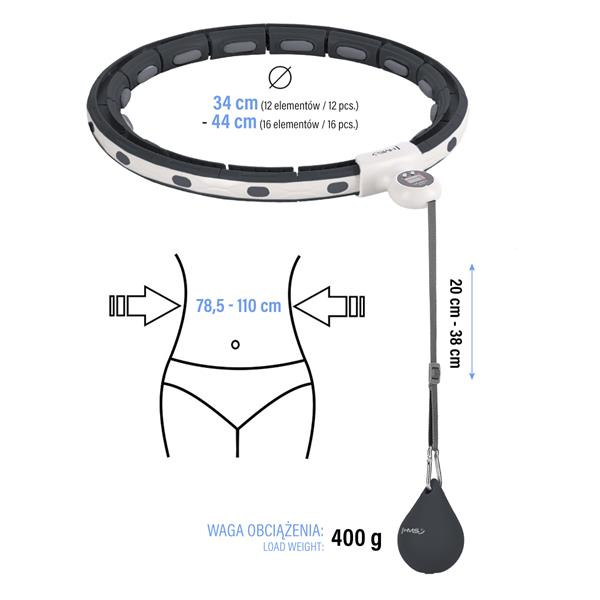 Popis Sada masážní hula hoop HMS HHM15 černá se závažím, magnety a počítadlem a zeštíhlujícího pásu BR163