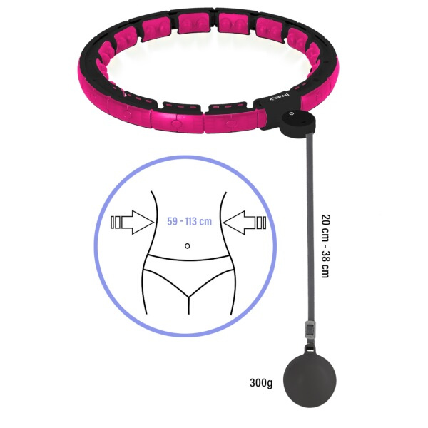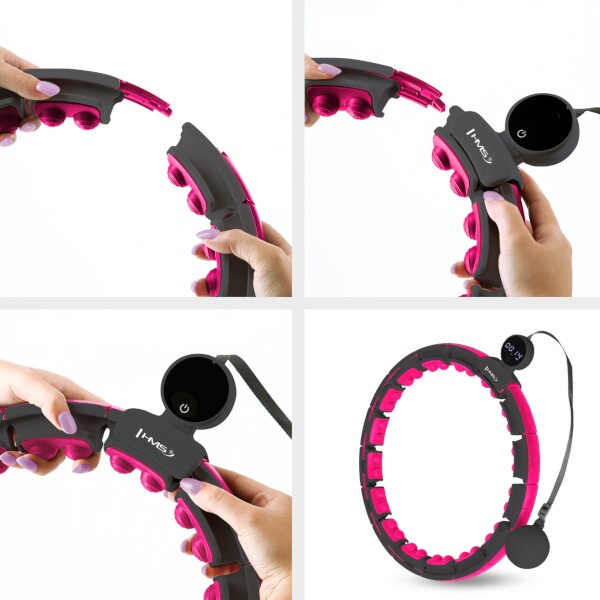 HMS HHM16 je hula hoop obruč s nastavitelným obvodem, masážními magnetickými výstupky, rotujícím závažím a přehledným, dobře čitelným počítadlem.