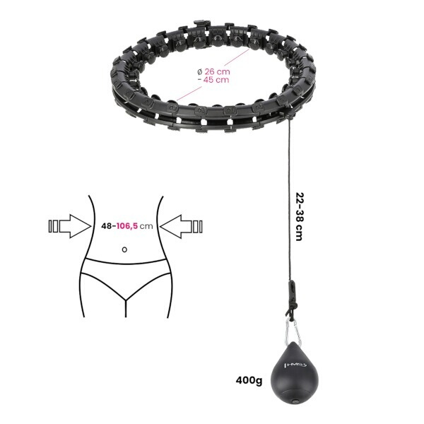 HMS HHW01 je hula hop obruč s nastavitelnou délkou, masážními výstupky a rotujícím závažím.