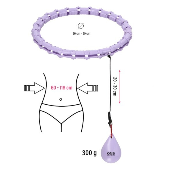 ONE Fitness OHA02 je hula hop obruč s nastavitelnou délkou, masážními ploškami, a rotujícím závažím.