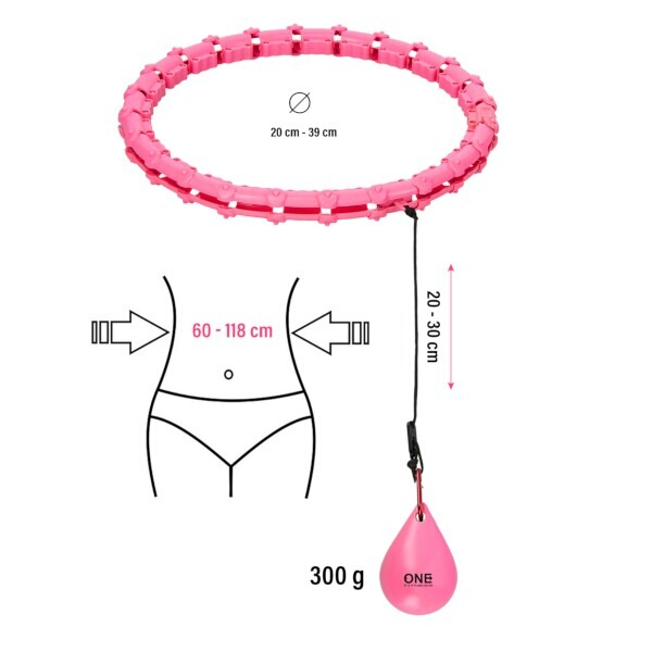 ONE Fitness OHA02 je hula hop obruč s nastavitelnou délkou, masážními ploškami, a rotujícím závažím.
