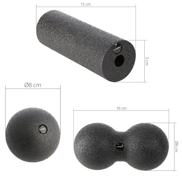Masážní souprava HMS FSBM07 je dokonalým nástrojem pro automasáž, který obsahuje vše pro udržení zdraví vašeho těla. Malý míček o průměru 8 cm je přesně to, co potřebujete k masáži spoušťových bodů a míst s napjatými fasciemi. Dvojitý míč HMS je ideální pro terapii hlubokých svalových skupin nebo těžko přístupných oblastí těla, jako je krk, hýždě, ramena a hrudník. S mini válečkem si můžete uvolnit předloktí nebo chodidla.