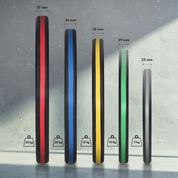 Sada olympijských kotoučů TOG od společnosti HMS Fitness je ideálním řešením pro ty, kteří hledají komplexní vybavení pro silový trénink. Sada obsahuje všechny dostupné zátěže: 2 x 5 kg, 2 x 10 kg, 2 x 15 kg, 2 x 20 kg a 2 x 25 kg, celkem tedy 150 kg zátěže. Kotouče TOG se vyznačují odolností, funkčností a moderním designem a splňují očekávání i těch nejnáročnějších uživatelů.