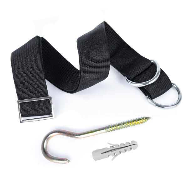 Sada KIDS60.2 obsahuje popruh s přezkou. Umožňuje zavěsit pytel v optimální výšce vzhledem k výšce dítěte. Správné zavěšení pytle je důležité pro pohodlí, ale především pro techniku úderů a prevenci zranění. Popruh je nastavitelný na délku až 100 cm. V sadě také naleznete stropní hák pro zavěšení pytle.