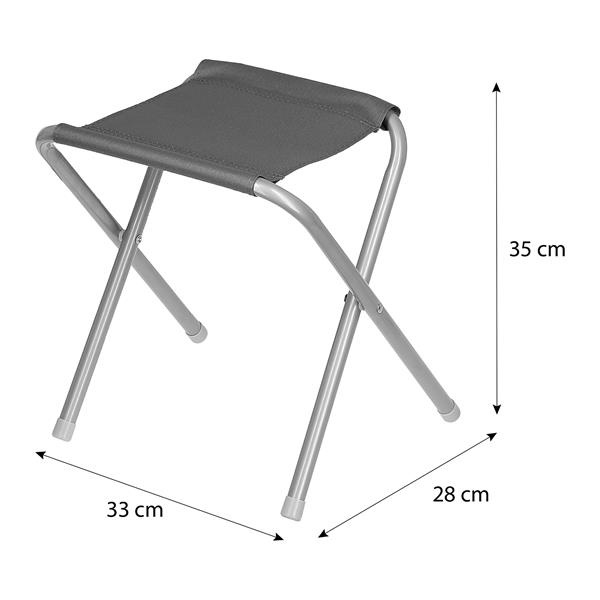 Čtyři židličky mají hliníkový rám a sedáky z odolného polyesteru. Po rozložení má každá židlička výšku 35 cm a plocha sedáku je 27 x 25 cm. Po složení se židličky pohodlně uloží dovnitř složeného stolu (kufříku), což šetří místo a dělá z celé sady velmi kompaktní celek.