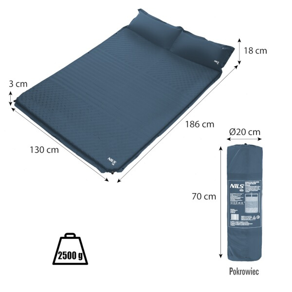 Popis Samonafukovací dvouosobová karimatka NILS CAMP NC4060 šedá