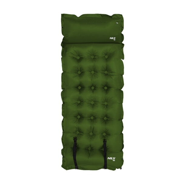Samonafukovací karimatka NILS CAMP NC4018 zajistí kvalitní spánek během kempování a dovolených pod stanem. Podložka je ale vhodná i k vodě a všude tam, kde si chcete příjemně poležet. Samonafouknutí zajišťuje vnitřní, pěnový materiál s otevřenými póry. Po povolení ventilu do sebe nasává vzduch a dostává se tak do původního stavu. Závěrem je ještě potřeba podložku dofouknout na požadovanou tvrdost. Skládání se provádí otevřením ventilu a srolováním od opačné strany, než je ventil. Karimatku poté zajistíme řemínky s přezkami a vložíme do dodávaného vaku. Na model NC4018 byl použit velice odolný polyester 190T potažený vrstvou PVC, tato kombinace zajišťuje vysokou odolnost a karimatka se dá položit i na nerovný povrch. Lemy karimatky jsou opatřeny druky, které umožňují spojit více matrací do jedné, veliké plochy, toto se hodí například k vyplnění podlahy ve stanu. Polštářek není odnímatelný a oproti karimatce není vyplněn pěnou a je potřeba ho celý nafouknout. Součástí balení je také opravná sada, která se hodí v případě poškození.