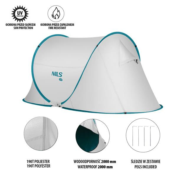 Samorozkládací plážový stan NILS Camp NC3743 je ideálním řešením pro každého milovníka pobytů u vody. Stan NC3743 se sám rozloží, je odolný a funkční, ale hlavně vás ochrání před slunečními paprsky, poskytne stín a zároveň vás ochrání před větrem.
