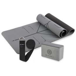 Šedá sada na jógu HMS - podložka YM10, jóga blok KJ02 a popruh SJ02