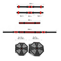 Kotouče jsou vyrobeny z trvdého plastu, který je vyplněn cementem. Obouruční osa je spojovacím dílem, do kterého se všroubují hřídele jednoručních činek. Nakládací trny jsou opatřeny závitem a závaží se zajišťuje pomocí hvězdicových matic. Šestihranný tvar kotoučů navíc zamezuje jejich odvalování. Činky se Vám tak nikam neodkutálí a budete je mít vždy tam, kde jste je odložily.