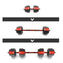 Kotouče jsou vyrobeny z trvdého plastu, který je vyplněn cementem. Obouruční osa je spojovacím dílem, do kterého se všroubují hřídele jednoručních činek. Nakládací trny jsou opatřeny závitem a závaží se zajišťuje pomocí hvězdicových matic. Šestihranný tvar kotoučů navíc zamezuje jejich odvalování. Činky se Vám tak nikam neodkutálí a budete je mít vždy tam, kde jste je odložily.