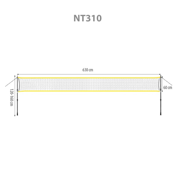 Sestava nastavitelné sítě na badminton, tenis, volejbalu či jiných sportů, které potřebuji síť. Celá sada se nachází v plastovém kufříku, který slouží taktéž jako základna. Síť má 3 velikosti nastavení a to přímo na jednotlivé sporty. Nejvyšší nastavení, vhodné pro volejbal, má 224 cm, badminton 155 cm a tenis má síť ve výšce 100 cm. K nastavení sítě není potřeba žádné nářadí, stačí pouze zacvaknout požadovanou velikost.