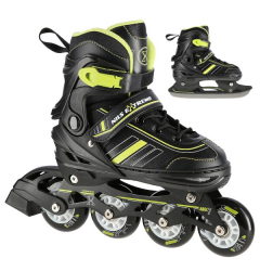 Celoroční brusle NILS Extreme NH382 Enzo 2v1. Bota nastavitelná do 4 rozměrů, vyměnitelný podvozek s kolečky nebo noži na led, zapínání na přezku, řemínek se suchým zipem a šněrování.Více