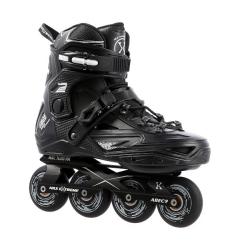 Slalomové a freeride brusle NILS Extreme NA20002 s tvrdou, větranou botou, hliníkovou lištou s kolečky v "slalomovém uložení" a ložisky ABEC 9. Zapínání na dvousekční přezku, napínací přezku a šněrování.Více
