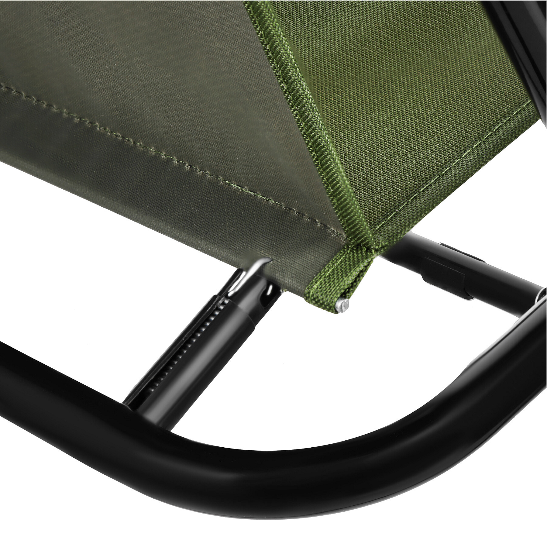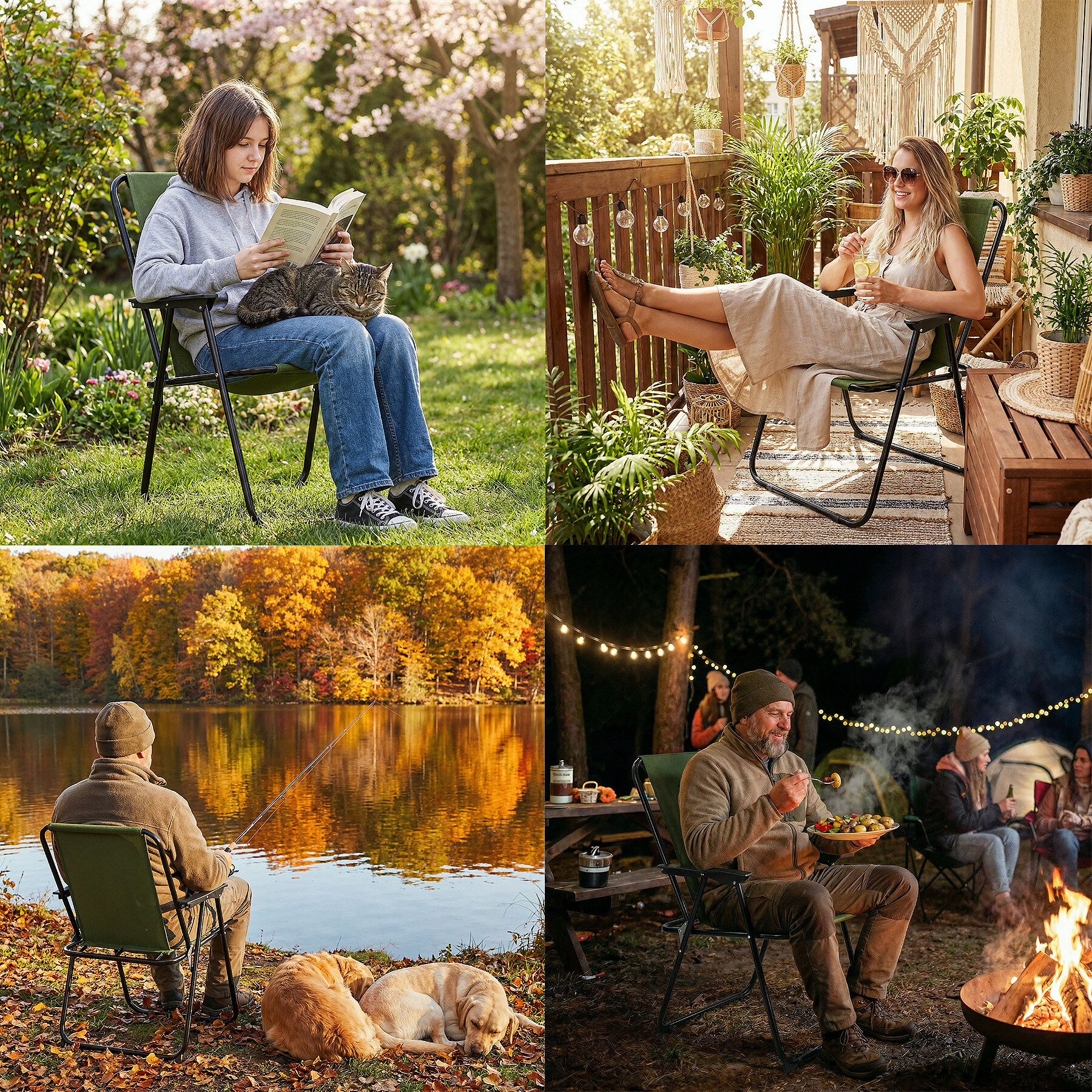 Sedák i opěradlo jsou vyrobeny z polyesteru 600D Oxford, který je odolný vůči oděru i vnějším vlivům. Materiál poskytuje ideální kombinaci pevnosti a pohodlí jak při krátkém odpočinku, tak i při delším sezení.