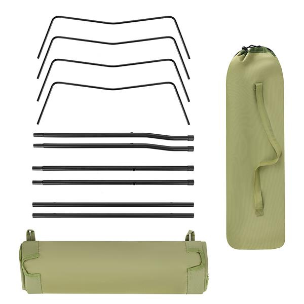 Potah postele je vyroben z odolného polyesteru v úpravě 600D Oxford, který je známý svou odolností proti oděru, roztažení a vlhkosti. Tento materiál zaručuje nejen dlouhou životnost, ale také pohodlí – je dostatečně napnutý a prodyšný, takže se uživatel cítí pohodlně i během teplých letních nocí.